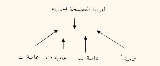 وهذا المخطط يشير إلى أن العربية الفصيحة الحديثة تنـزل لتقترب من العاميات، في حين نجد العاميات تتحرك صعدا لتقترب من العربية الفصيحة الحديثة.
