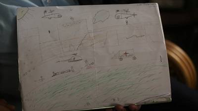 This scene of war and destruction was drawn by a child undergoing counselling for PTSD at the Khan Younis Community Mental Health Programme