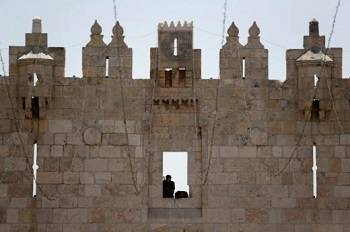 Israeli police stand guard at the Damascus Gate to Jerusalem's Old City July 28, 2017. REUTERS
